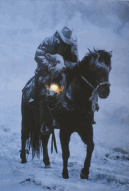 Further confirmation came when he walked in his house and saw this print hanging on his wall. He was captivated by it and bought it years ago, but couldn’t have really told you what he liked about it…now he knows. It is a cowboy rescuing a helpless animal in a storm.